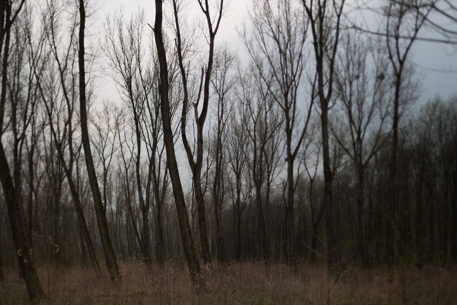 November 2008. Every day around 5pm, crows gather on the branches of apple trees and poplars, returning from the fields. A series of photographs taken on walks by the river Alb in Karlsruhe.
